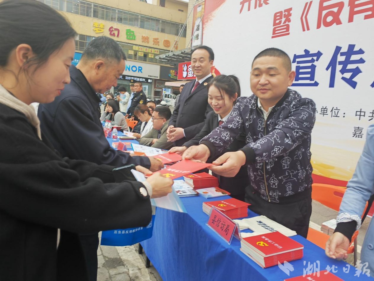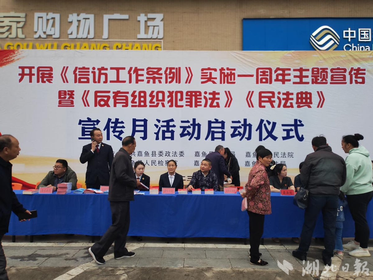 湖北日?qǐng)?bào)客戶端訊(通訊員陳錚 童文斌)5月7日,由嘉魚縣委政法委、縣信訪局、縣法院、縣檢察院、縣司法局等單位聯(lián)合舉辦的《信訪工作條例》實(shí)施一周年主題宣傳暨《反有組織犯罪法》《民法典》宣傳月活動(dòng)啟動(dòng)儀式在和潤(rùn)家購(gòu)物廣場(chǎng)隆重舉行。嘉魚縣公安局、縣衛(wèi)健局、縣市場(chǎng)監(jiān)督管理局、縣交通局、縣教育局、縣人行等相關(guān)部門參加活動(dòng)。