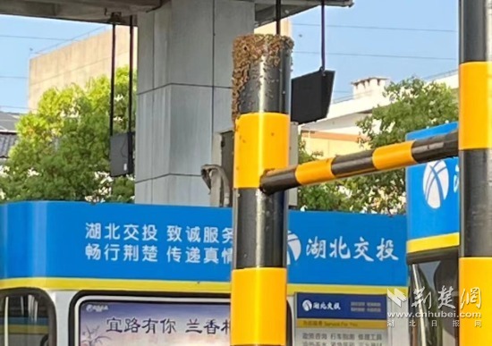 荊楚網(湖北日報網)訊(記者趙秀琳 通訊員馮橙 霍曉媛)5月8日,湖北交投宜昌運營公司宜都北收費站內,一輛蜜蜂運輸車通行時,大量蜜蜂突然從車內集體“逃逸”,盤旋在收費車道附近。收費員立即開展“驅蜂行動”,保障過往車輛行車安全。