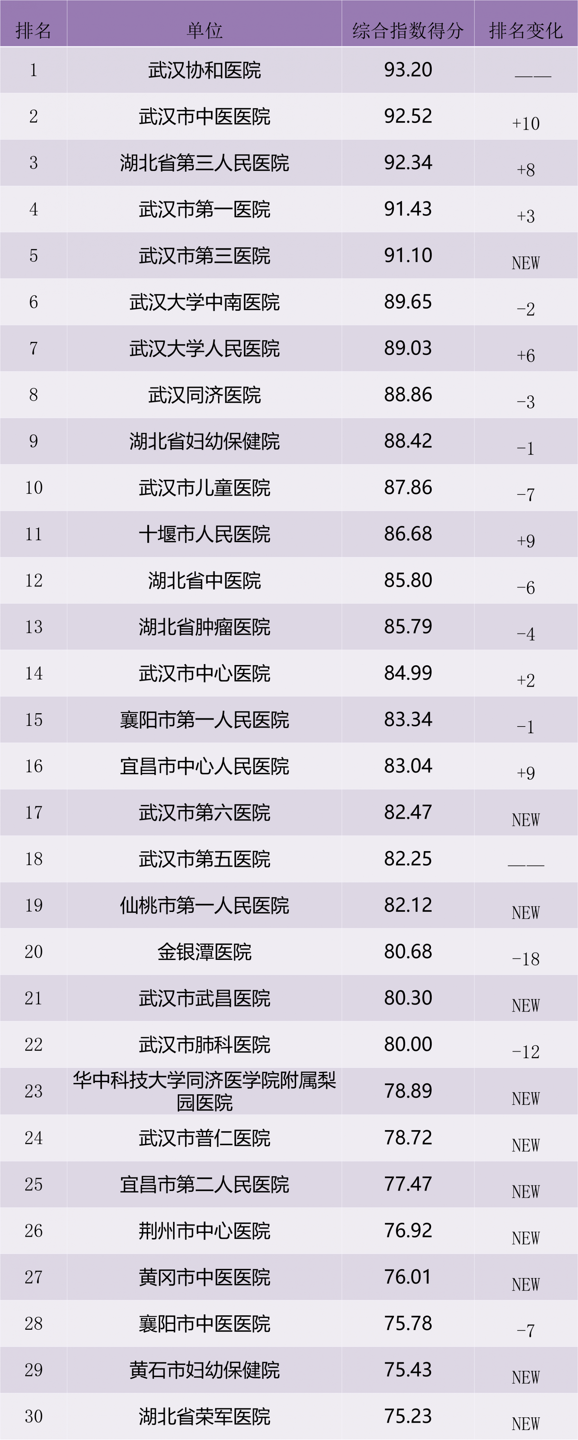 (排名變動體現本期與上期排名變化,上升為“+”,下降為“-”,新進榜為“NEW”,無變化為“——”)