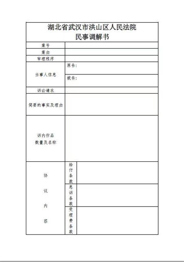 近日,武漢市洪山區人民法院制作、推出了適用簡單知識產權系列案件的表格式調解書。該調解書的適用,起源于該院近期調解的某圖片庫平臺訴某公眾號經營者的著作權侵權案件。