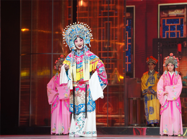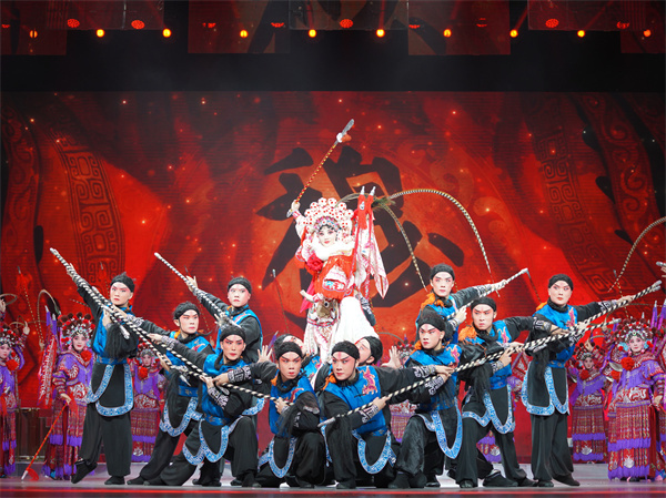 第27屆梅花獎獲得者楊霞云、第30屆梅花獎獲得者樓勝為大家?guī)礞膭 赌鹿鹩⒋笃铺扉T陣》選段,氣吞山河,英姿絕代。