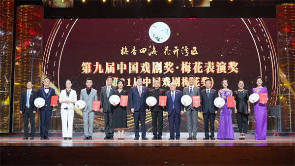 5月21日晚,第九屆中國戲劇獎·梅花表演獎(第31屆中國戲劇梅花獎)和曹禺劇本獎(第25屆曹禺戲劇文學獎)頒獎晚會在廣州舉行。郝士超(昆劇、河北梆子)、施夏明(昆劇)、鄭芳芳(晉劇)、李嘉宜(粵劇)、馮冠博(京劇)、袁媛(黃梅戲)、梅院軍(黃梅戲)、鄭全(越劇)、孫礫(歌劇)、郭偉(京劇)、王航(秦腔)、羅晨雪(昆劇)、章益清(越劇)、張佳春(京劇)、唐愷(京劇)共15人獲頒中國戲劇梅花獎。周振天(執(zhí)筆)和陳萱創(chuàng)作的話劇《深海》、毓鉞創(chuàng)作的話劇《驚夢》、徐瑛創(chuàng)作的花鼓戲《夫子正傳》、陳欣欣創(chuàng)作的閩劇《生命》、陸軍和肖留創(chuàng)作的話劇《董其昌》共5部作品獲頒曹禺戲劇文學獎。越劇《核桃樹之戀》(編劇:謝麗泓),話劇《喜相逢》(編劇:林蔚然、王人凡),曲劇《河洛工匠》(編劇:原長松、何海江)話劇《浪潮》(總編劇:韓丹妮、肖詩瑤,編劇:潘羽昕、宋文琪),藏戲《次仁拉姆》(編劇:索朗占堆、朗加旦增)5部作品獲提名。