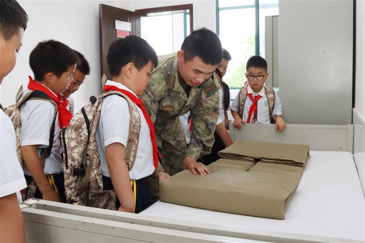 “叔叔,可以教我們疊‘豆腐塊’嗎?”走進班排宿舍,干凈整潔的床單、擺放有序的水杯、棱角分明的軍被、一塵不染的地面,讓孩子們發出陣陣感嘆。