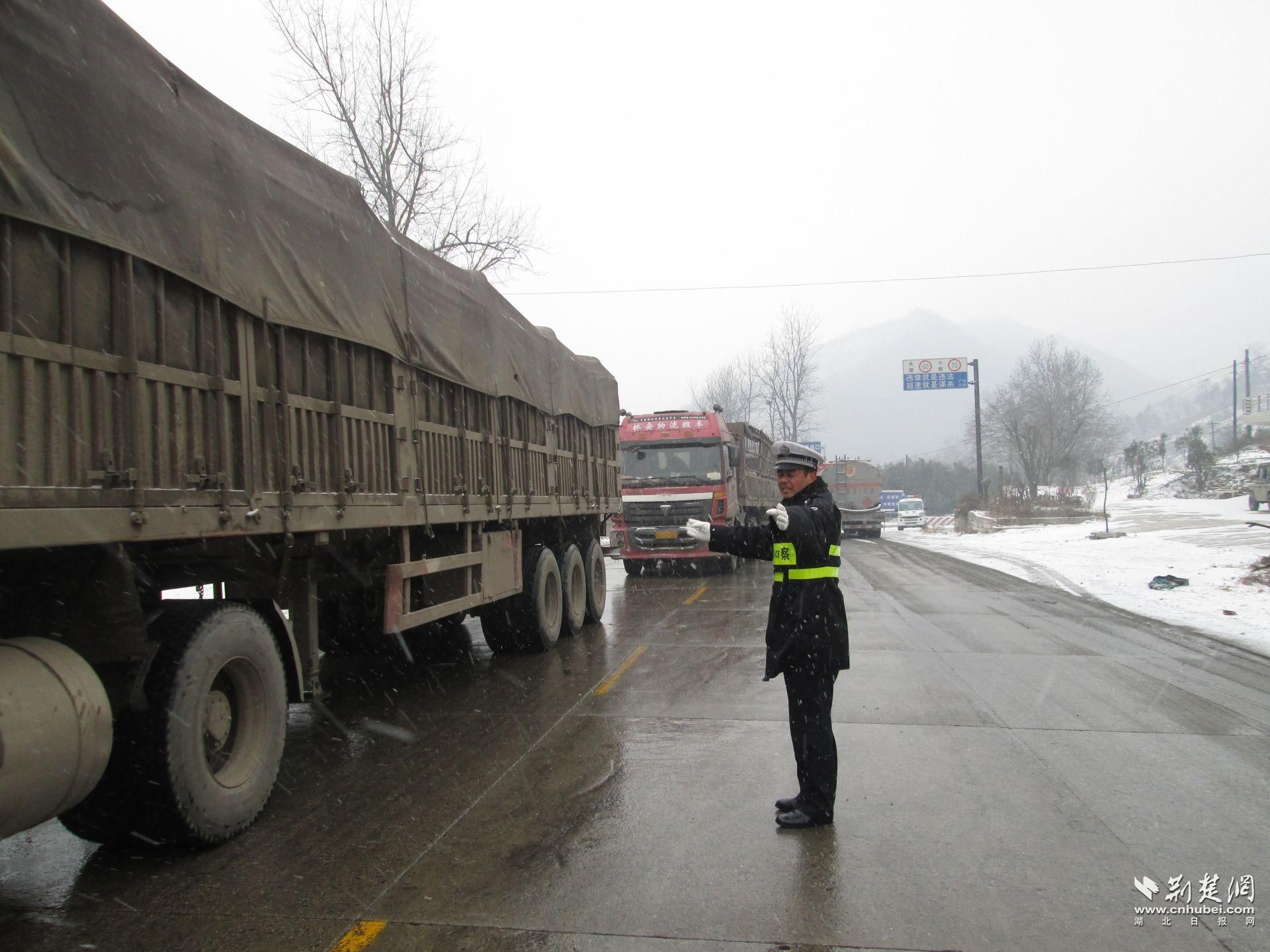 大雪造成107國道行車緩慢,黃遠波在路上疏導交通。通訊員供圖