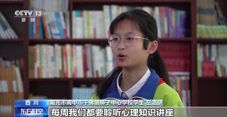 四川南充千佛鎮獅子中心校學生 岳洛伊:每周我們都要聆聽心理知識講座。在課堂上我也學到了很多知識,比如如何調節自己的心情?怎樣做好自我保護?這個課堂為我們的成長打開了心靈之窗。