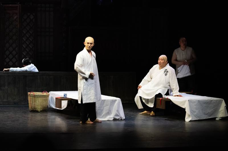 作為一部京味兒話劇,《清水堂》的主創和主演團隊中,北京人占了很大比重。整部作品以北京話為主要語言風格,借用相聲語言的邏輯插科打諢,設置包袱,并在三幕間穿插北京小曲,原汁原味展現民俗、行規和北京俗語的來歷。?