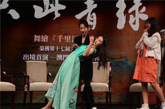 這兩天,為了給“青綠”澳門(mén)首演預(yù)熱,主創(chuàng)總編導(dǎo)周莉亞、作曲呂亮以及三位舞蹈家——“希孟”張翰、“青綠”孟慶旸和“展卷人”謝素豪走進(jìn)校園和社區(qū),與澳門(mén)的觀(guān)眾近距離接觸,受到觀(guān)眾們的熱情追捧。22日晚,由澳門(mén)舞蹈家協(xié)會(huì)主辦的“2023舞藝傳承——《只此青綠》高雅藝術(shù)進(jìn)校園活動(dòng)”在澳門(mén)培正中學(xué)舉行,澳門(mén)演藝學(xué)院、培正中學(xué)、濠江中學(xué)、澳門(mén)科技大學(xué)等11所學(xué)校超過(guò)350名舞蹈隊(duì)學(xué)生與“青綠”主創(chuàng)團(tuán)隊(duì)面對(duì)面。