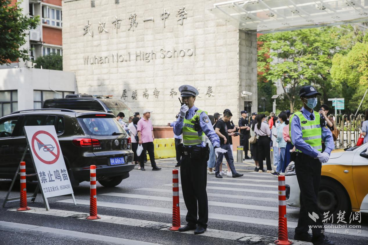 江漢民警在市一中考點外執勤。通訊員供圖