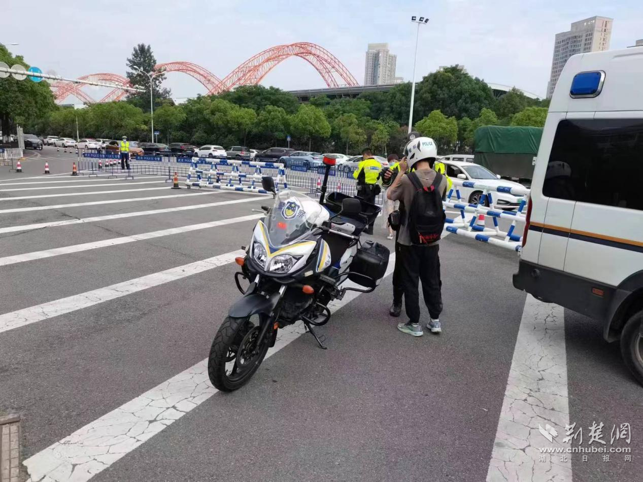 經開區漢警快騎隊員護送走錯考場考生。通訊員供圖