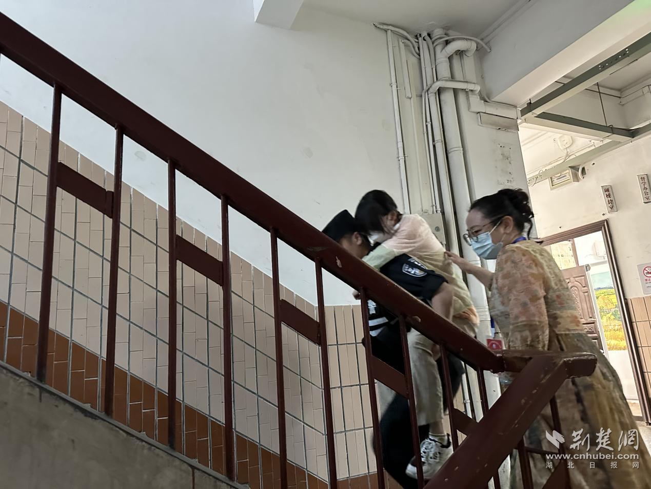 “別著急,我們背你。”7時25分許,一名家長推輪椅將腳部骨折的女兒送到武漢市第二十六中學考點,但怎么進場卻犯了難。執勤特警王帥、張博文發現后,主動接過輪椅,將考生推進考點,背上5樓送入考場,并寬慰高考期間將全程解決她進出考場的難題。高考首日,武昌、硚口、青山區也分別有行動不便的考生,均在民警幫助下順利進場。