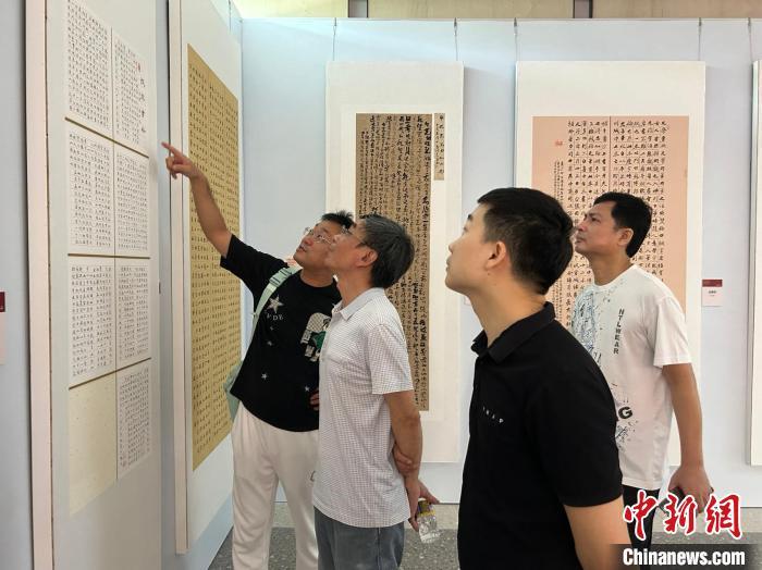 圖為觀眾觀看入展書法作品。 符宇群 攝