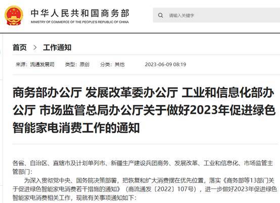 中國經(jīng)濟(jì)網(wǎng)北京6月9日訊(記者王婉瑩) 記者從商務(wù)部獲悉,近日,商務(wù)部辦公廳、發(fā)展改革委辦公廳、工業(yè)和信息化部辦公廳、市場(chǎng)監(jiān)管總局辦公廳共同發(fā)布《關(guān)于做好2023年促進(jìn)綠色智能家電消費(fèi)工作的通知》(以下簡(jiǎn)稱《通知》)。《通知》提出,要深入開展家電以舊換新,促進(jìn)綠色智能家電消費(fèi)。