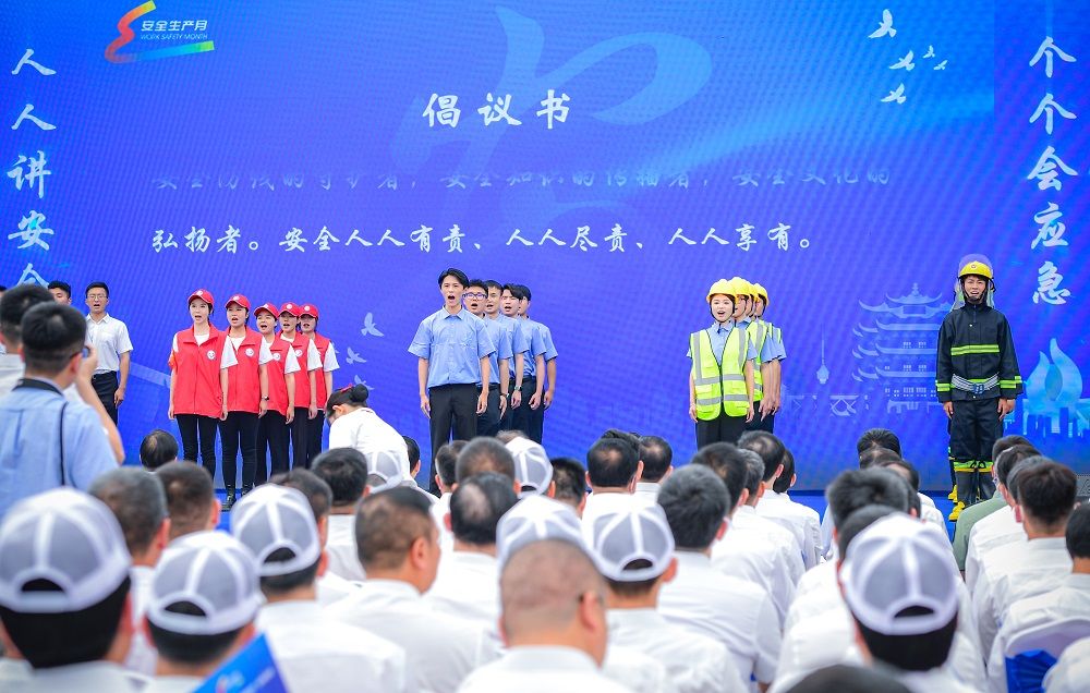 “為個人生命安全,為家庭美滿幸福,為企業安全發展,我們倡議:樹立全面安全意識,每時每刻牢記安全,當好安全家園的建造者,安全理念的踐行者,安全防線的守護者,安全知識的傳播者,安全文化的弘揚者。安全人人有責、人人盡責、人人享有。”鏗鏘有力的倡議詞回蕩在現場每個人心中。