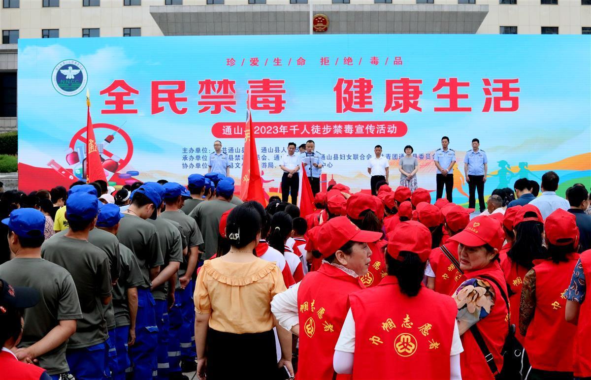 8:30分,1000余人的徒步隊(duì)伍,身著禁毒馬甲、戴著禁毒文化帽,興高采烈、浩浩蕩蕩從該縣政府廣場(chǎng)出發(fā),沿著通羊河禁毒文化步道、濱河路、洋都大道繞行一周后回到起點(diǎn)。一路上,大家手舉寫有“禁毒靠大家,利民利國(guó)家”等字樣的禁毒反詐宣傳旗幟和宣傳牌,不時(shí)高喊“全民禁毒 健康生活”等禁毒口號(hào),向沿途群眾發(fā)放禁毒宣傳資料,匯成了一道聲勢(shì)浩大的宣傳洪流。