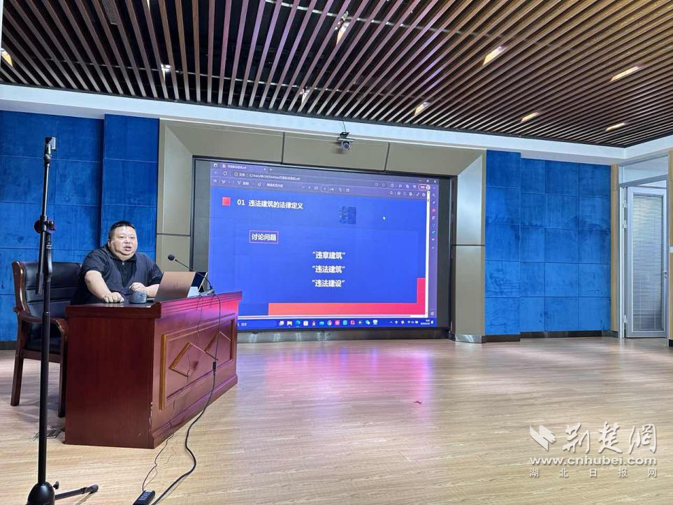 培訓會上,湖北漢武律師事務所主任余鋼律師圍繞違法建筑的認定、違法建筑的行政處理與程序、行政案件的證據三大模塊,重點解析了《中華人民共和國土地管理法》《中華人民共和國城鄉規劃法》《武漢市控制和查處違法建設條例》《武漢市城市管理相對集中行政處罰權辦法》等法律、法規中高頻使用的條款,由表及里、深入淺出,為大家帶來了一場精彩的講解。