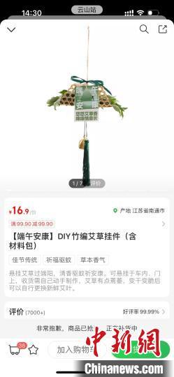 某平臺(tái)DIY艾草花束材料包已售罄 手機(jī)截圖 攝