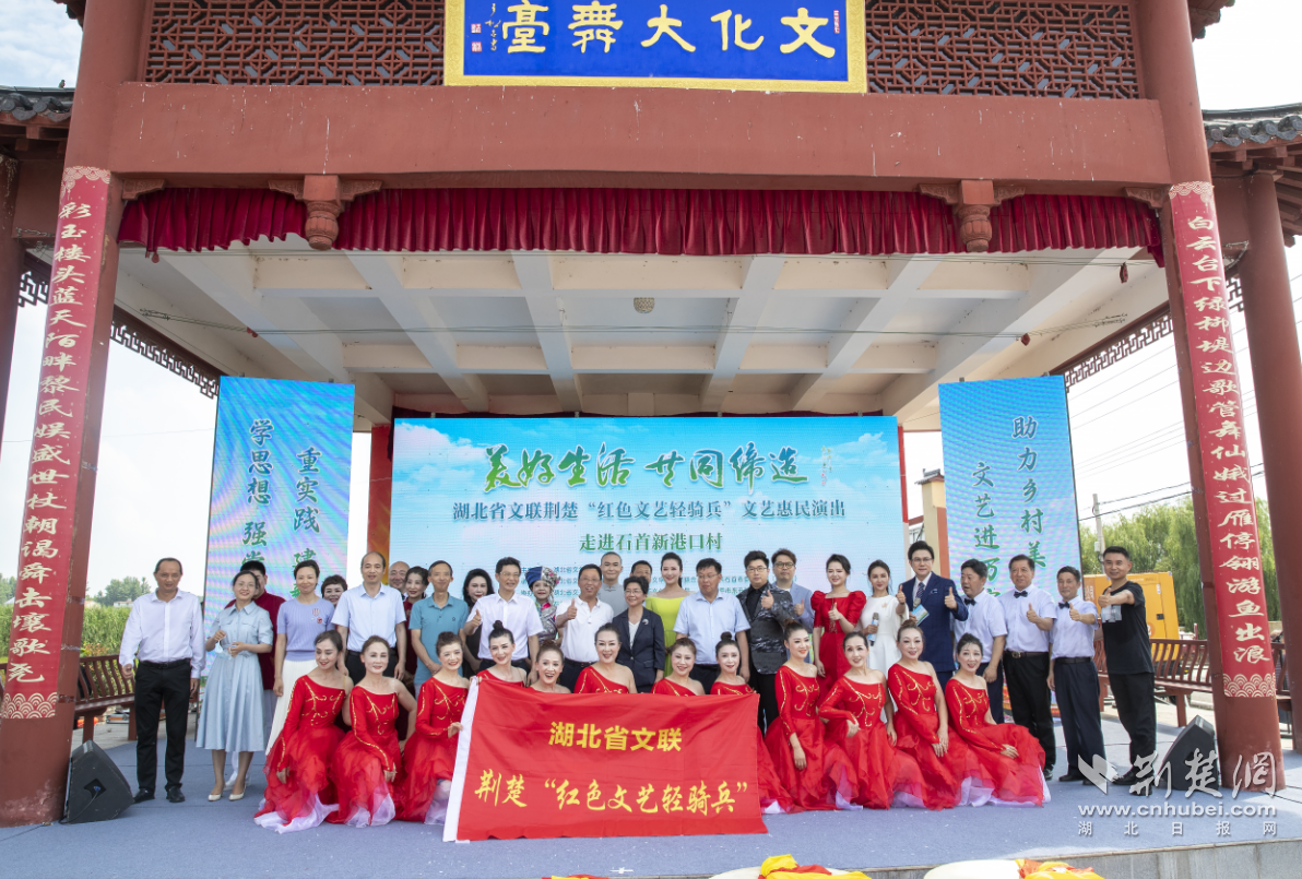 荊楚網(湖北日報網)訊(通訊員王曉飛 聶燕林 攝影陳利安)清歌雅舞放異彩,美麗鄉村入夢來。6月21日,石首新港口村熱鬧非凡,“美好生活 共同締造”湖北省文聯荊楚“紅色文藝輕騎兵”文藝惠民演出活動在此盛大展開,現場近千名觀眾、10萬余名網友共享文化盛宴。
