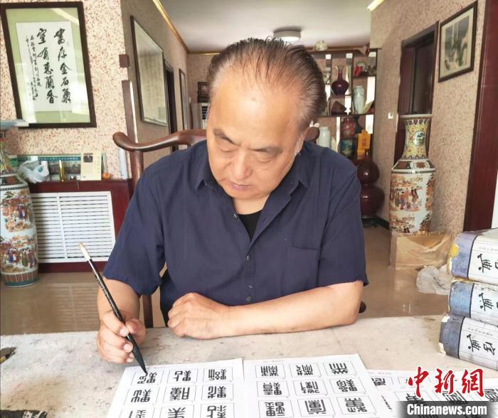 中新網(wǎng)菏澤6月26日電 (李明芮 肖守祥)“繆篆字庫是與北大方正字庫合作的一個項目,目前撰寫7000多個字并錄入完成,已進入試運營階段,這個項目填補了中國繆篆字庫的空白。”6月26日,記者走進位于菏澤市巨野縣的繆篆藝術(shù)研究工作室內(nèi),繆篆書刻傳承人張會利正聚精會神地進行繆篆字庫的創(chuàng)作。