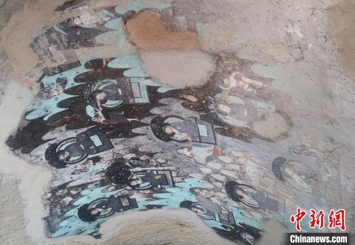 克孜爾石窟內殘存的壁畫。 石雙 攝