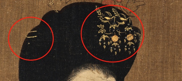 發(fā)髻上滿滿當(dāng)當(dāng)?shù)卮髦鞣N飾物