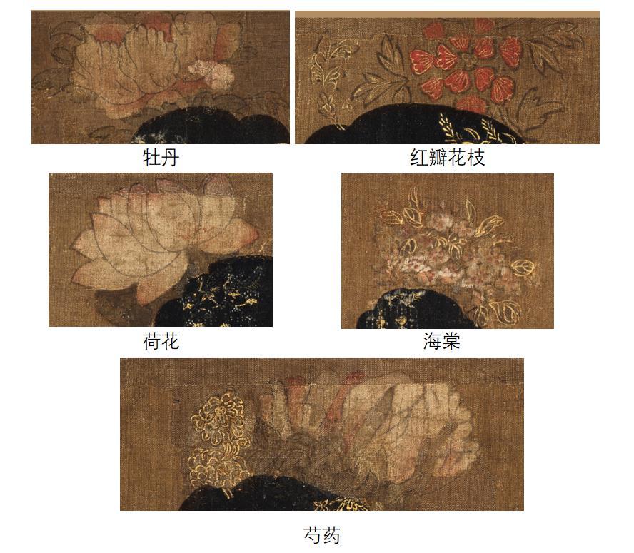 牡丹、紅瓣花枝、荷花、海棠、芍藥