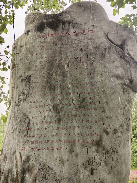 在車湖,還有一塊石碑,車湖劉郎洑古渡口。據(jù)說蘇軾前來拜訪王氏兄弟便從此渡口上岸。夏建國介紹,該渡口地名可能與劉備有關(guān),三國赤壁大戰(zhàn)劉備在此處會見孫權(quán),《大明一統(tǒng)志》云“舊傳孫權(quán)迎蜀主劉備于此”,“劉郎”即指劉備。