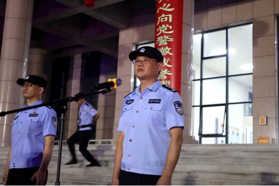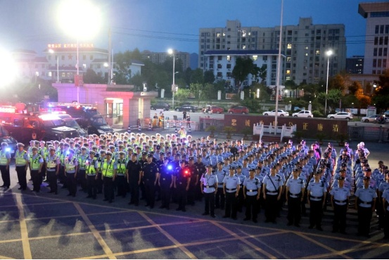 晚上8時,通城縣公安局舉行全縣公安機關2023年夏季治安打擊整治第一次集中統一行動啟動儀式,余亞林宣布行動開始。