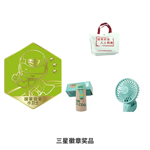 線上,依托互動H5小程序,按照游戲通關模式,設置瀏覽基地、知識答題、打卡上傳等互動環節。參與者通過微信掃描活動二維碼,登錄“江城少年國安行”小程序參與活動。在瀏覽基地概況并答對1道國家安全知識題目后,即可進入基地打卡環節。每打卡1個基地,上傳與“武小安”合影,就可點亮1個基地的圖標。點亮1個基地、3個基地、5個基地、8個基地,可分別獲得“國家安全小衛士”一星、二星、三星、四星電子榮譽勛章。
