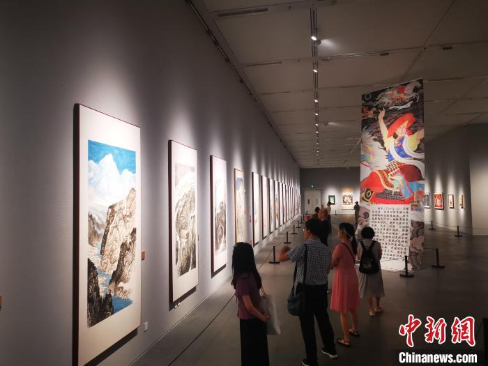 民眾參觀“隔山對話——川藏美術名家交流展”。 單鵬 攝