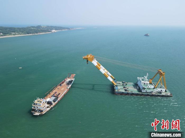 資料圖:威海灣一號裝甲板起吊現場。 山東省文旅廳供圖