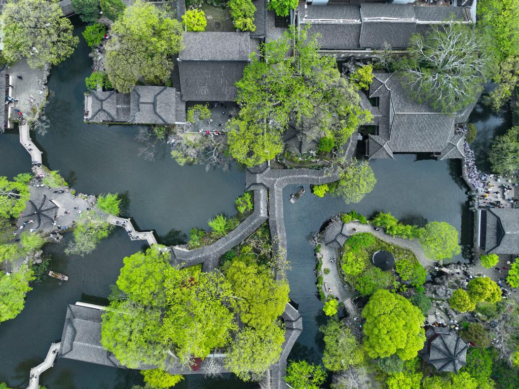 2023年4月5日拍攝的蘇州拙政園一景(無人機照片)。新華社記者 李博 攝