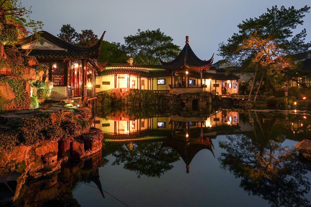 2023年4月5日拍攝的蘇州網師園夜景。新華社記者 李博 攝