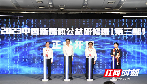 隨后,在中華全國新聞工作者協(xié)會書記處書記蘇榮才,北京師范大學(xué)中國公益研究院副院長程芬,阿里巴巴公益部副總裁、阿里巴巴鄉(xiāng)村振興基金總經(jīng)理王威,湖南紅網(wǎng)新媒體集團黨委書記、董事長賀永祥的共同啟動下,2023中國新媒體公益研修班(第三期)正式開班。