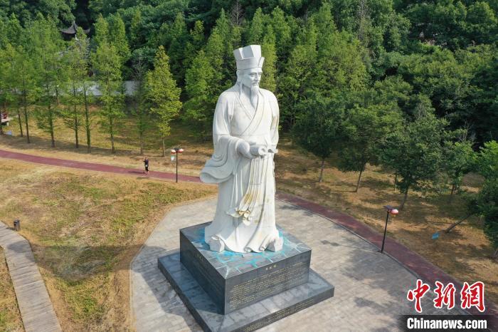 7月14日,江西省九江市宋元公周濂溪墓園內的周敦頤雕像。中新社記者 劉占昆 攝