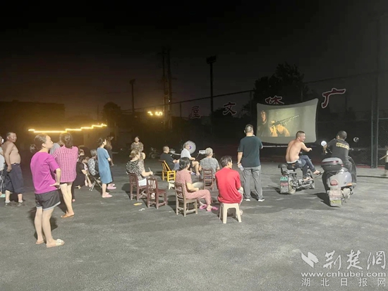 夜幕初上,涼風習習,鄂城區西山街道梁新屋村十組的文化廣場熱鬧非凡。村民們一面享受夜風的輕撫,一面為大屏幕上播放的電影《血戰黎明前》中的精彩片段鼓掌叫好。革命戰士們不懼流血犧牲,光榮獻身祖國的崇高品質,讓村民們為之動容,潸然淚下。