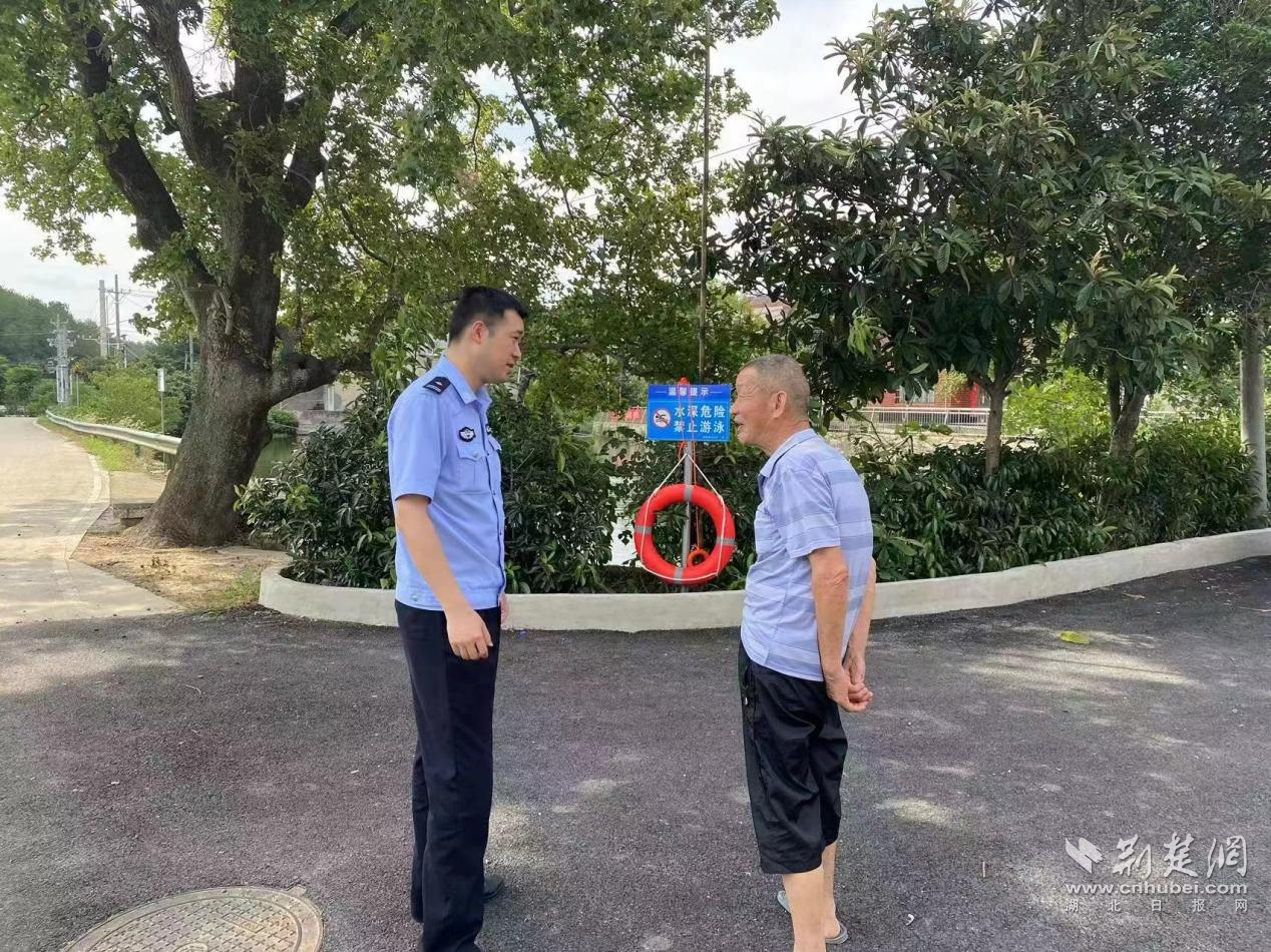 在黃陂區,姚家集街派出所掛職副所長曾亮組織駐村輔警一一走訪轄內涉水區域,落實警示牌、救生圈、救生繩、救生桿、喊話器等“五個一批”建設部署。據了解,夏季治安打擊整治行動以來,他已走訪36個村,檢查涉水點149處,督促補齊警示牌、救生設備等26件。