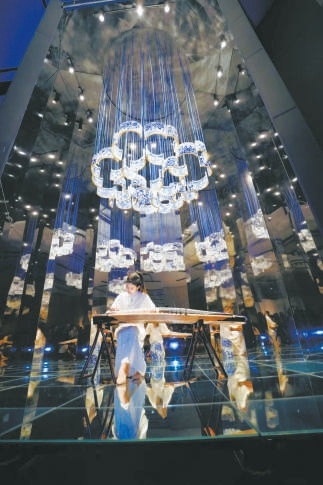 在《花的三重境》空間中,來(lái)自湖南師范大學(xué)的演奏家丁雪純?cè)趽u擺的青花瓷片作品下演奏了一曲古箏協(xié)奏曲《秋韻》,樂(lè)曲在瓷片中恣意流淌,帶觀者一同進(jìn)入秋實(shí)景象……展覽將持續(xù)至8月10日。