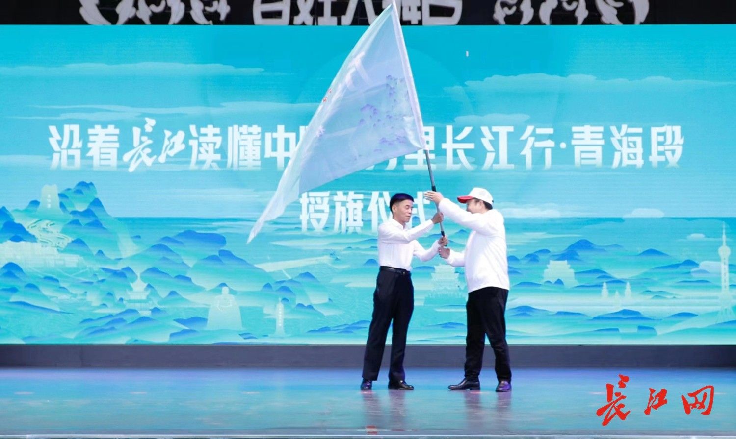 7月21日上午,“沿著長江讀懂中國——萬里長江行”主題宣傳推廣活動青海段探訪啟動儀式在西寧市舉行。文化和旅游部資源開發(fā)司二級巡視員白四座為探訪團授旗,長江網(wǎng)總編輯楊文平代表探訪團接旗。王箏 攝