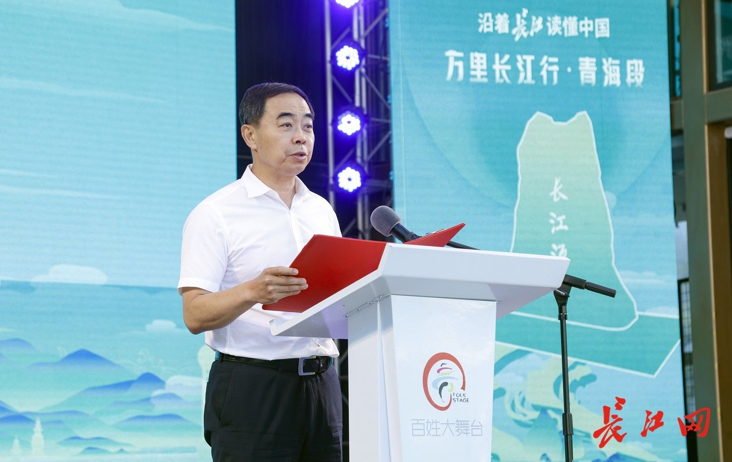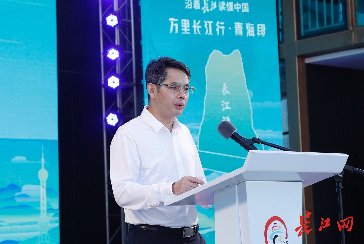 “沿著長江讀懂中國——萬里長江行”主題宣傳推廣活動青海段探訪啟動儀式上,湖北省文化和旅游廳黨組成員、副廳長陳武斌致辭。王箏 攝