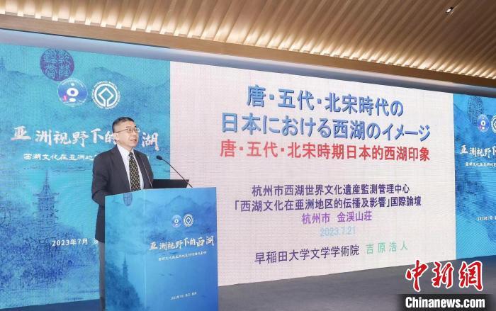 “文明因交流而多彩,文明因互鑒而豐富”。在亞洲的諸多國家之中,日本與杭州西湖的淵源頗深。“在日本,早在平安時代菅原道真的詩文中就可見‘孤山寺’之名。換言之,在中國唐代時期,日本文人就對西湖已經有所認知。”來自日本早稻田大學文學學術院教授吉原浩人在演講中提到。