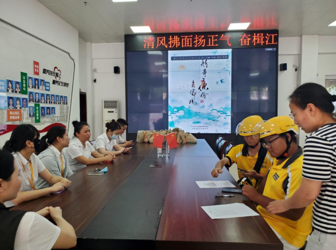 活動現場,社區工作人員分享廉潔家風故事,以此提高大家的廉潔意識,以清為美、以廉為榮,弘揚清廉文化,營造清風正氣的良好社會氛圍。同時還為新就業群體勞動者送上“夏日清風大禮包”,禮包中有花露水、毛巾、冰袖等貼“新”物資。一份清涼、一聲問候,猶如絲絲清泉流入兩新就業群體的心中。面對社區黨組織的關心,他們紛紛表示,將繼續堅守在自己的本職崗位,保持良好的精神面貌和工作戰斗力,踏實認真做好本職工作,為居民群眾做好服務,同時在日常工作和生活中當好弘揚廉潔家風的踐行者與宣傳員。