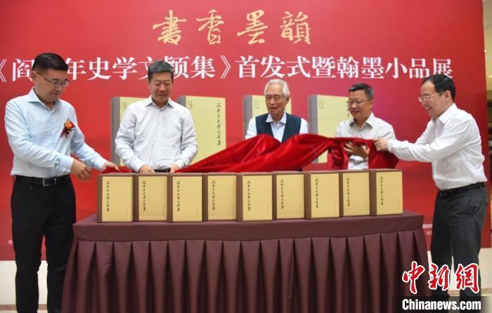 中新網(wǎng)北京8月3日電 書香墨韻——《閻崇年史學文穎集》首發(fā)式暨翰墨小品展日前在青島舉行。89歲的閻崇年精神矍鑠地參加了首發(fā)式及開幕展。
