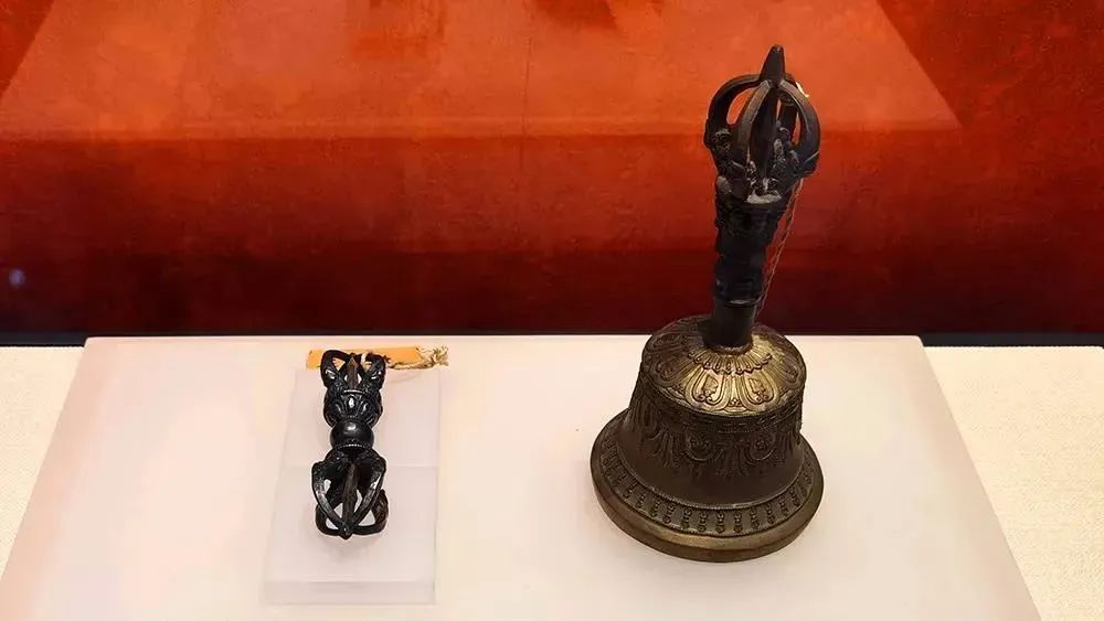 ▲藏在承德博物館中的銅鈴、杵,是六世班禪為乾隆皇帝祝壽敬獻(xiàn)的禮品之一。(總臺央視記者 馬立飛 攝)