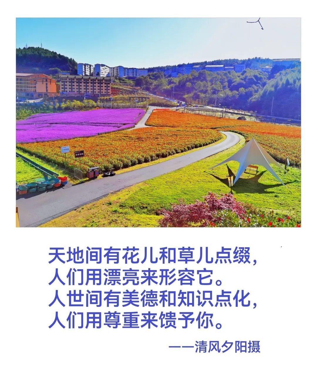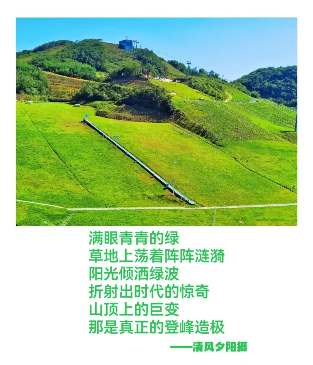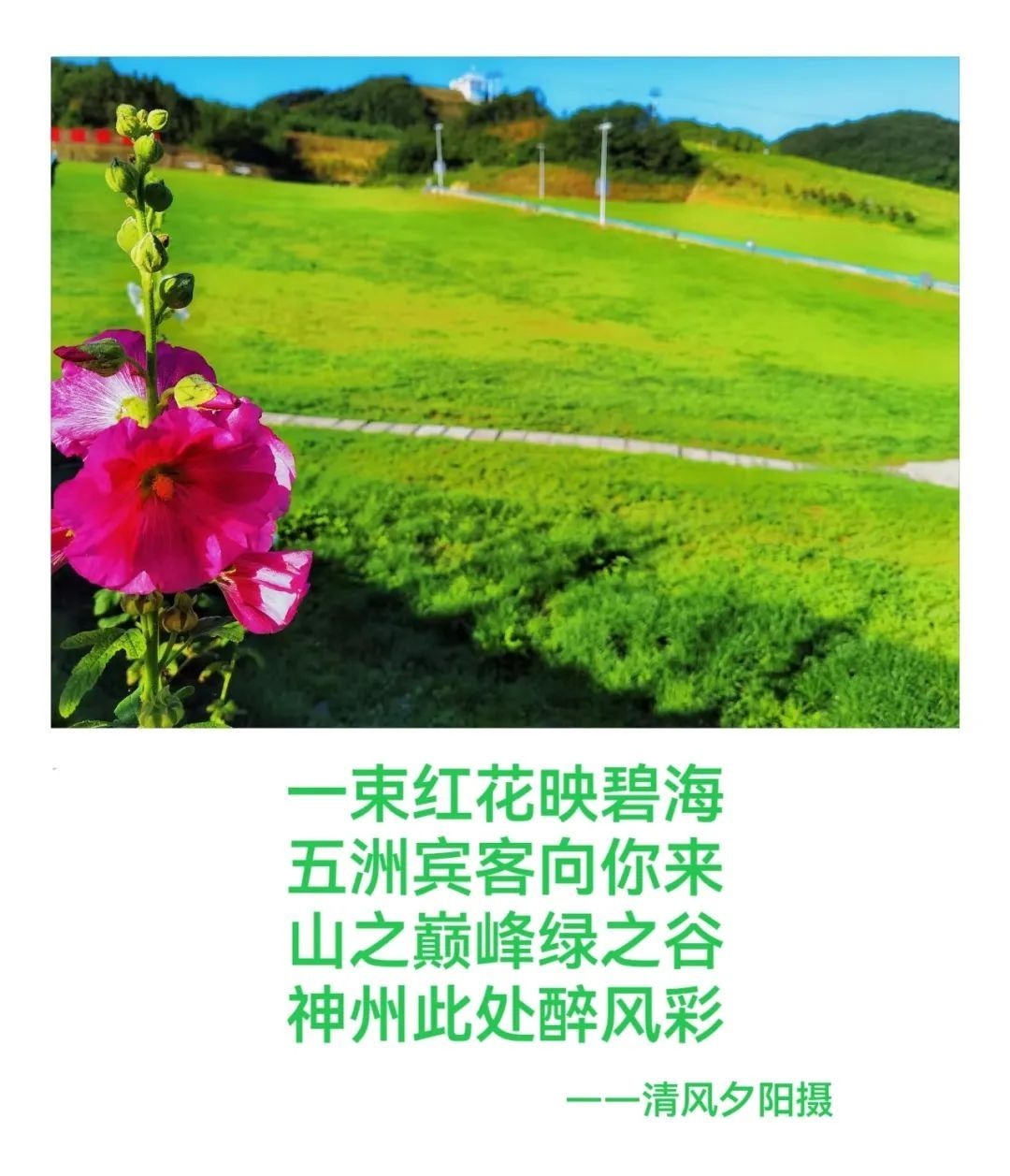 次日,晨曦喚醒了我,并帶我到綠蔥坡的坡、綠蔥坡的山、綠蔥坡谷走了一遭,我不經意的用手機照了幾張照片,回來一看,我竟然著實的把自己表揚了一番——“你竟然會拍了,拍得好!”其實,不是我拍得好,是綠蔥坡的景觀確實好!一激動,我又哼呀唧的寫了幾句分行的“普通話”——太普通的話兒。雖然普通,卻是從胸腔迸出的心聲!“感郎千金意,愧無傾城色”,蠻不好意思的,呵呵!女士們先生們同志們朋友們伙計們:見笑見笑,見諒見諒!