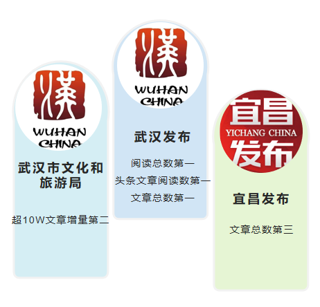 從閱讀量來看,“武漢發布”位居第一,“武漢市文化和旅游局”“十堰發布”“黃石發布”“恩施發布”依然保持超百萬閱讀量。值得一提的是,本期閱讀量10W+的文章共8篇,較上期增加1篇,其中6篇為“武漢市文化和旅游局”發布。