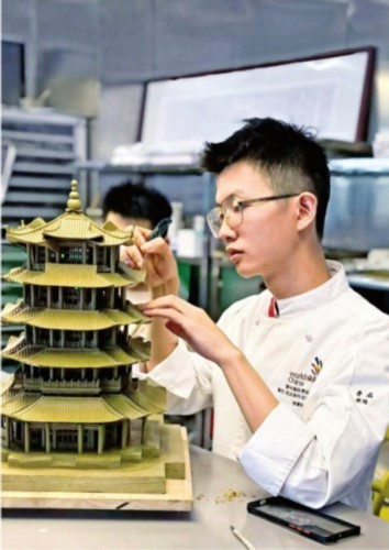“一般情況下,我每天要切35公斤的土豆絲練刀工,雕花用15公斤蘿卜……”魯磊告訴記者,在學校除了正常上課之外,他每天會給自己安排3到7個小時“加練”,寒暑假則會在學校的安排下到企業去實操歷練。