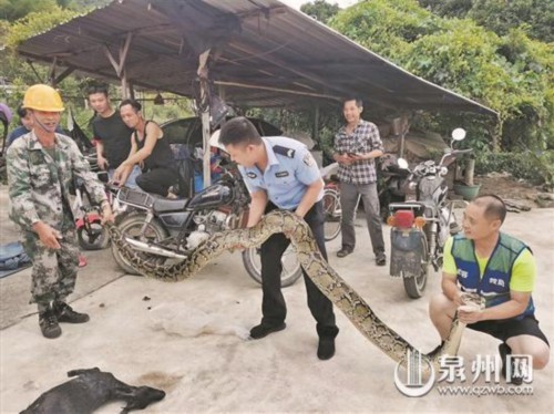 早報訊 (記者陳祥木 蘇瑋杰 通訊員林毅鑫文/圖)“警察同志,我家的羊被蛇吃了,你們快來!”近日,安溪縣公安局西坪派出所接到轄區群眾的求助。民警化身“捕蛇人”,將蛇擒獲并放生。