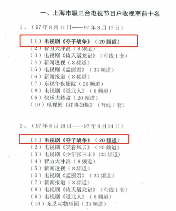 1997年8月,《奪子戰爭》連續兩周列收視率首位