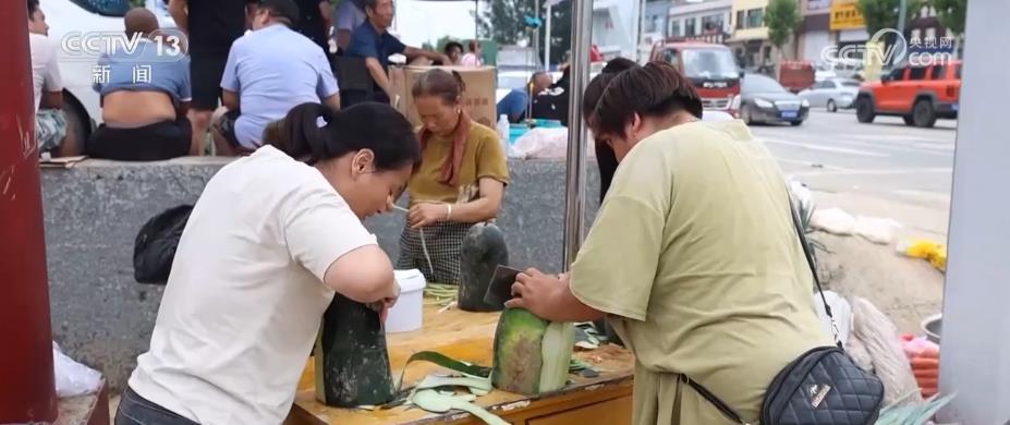 8月6日下午,在河北涿州西茨村村口,幾位志愿者正在準備晚飯,不少村民也幫忙削皮、切菜。