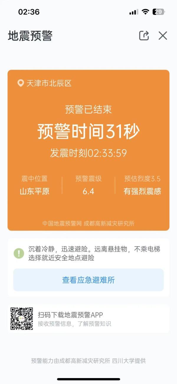 另據了解,今年年底,國家地震烈度速報與預警工程將投入運行,作為該工程“先行先試”試點項目之一,預警工程天津子項目建設目前已基本完成,進入試運行階段,初步形成地震預警和信息服務能力,可在監測區域內地震發生之后5至8秒發布地震預警信息,5至10分鐘產出烈度速報信息。目前,天津地區建有203個預警監測站點,平均臺站間距約7.7千米。